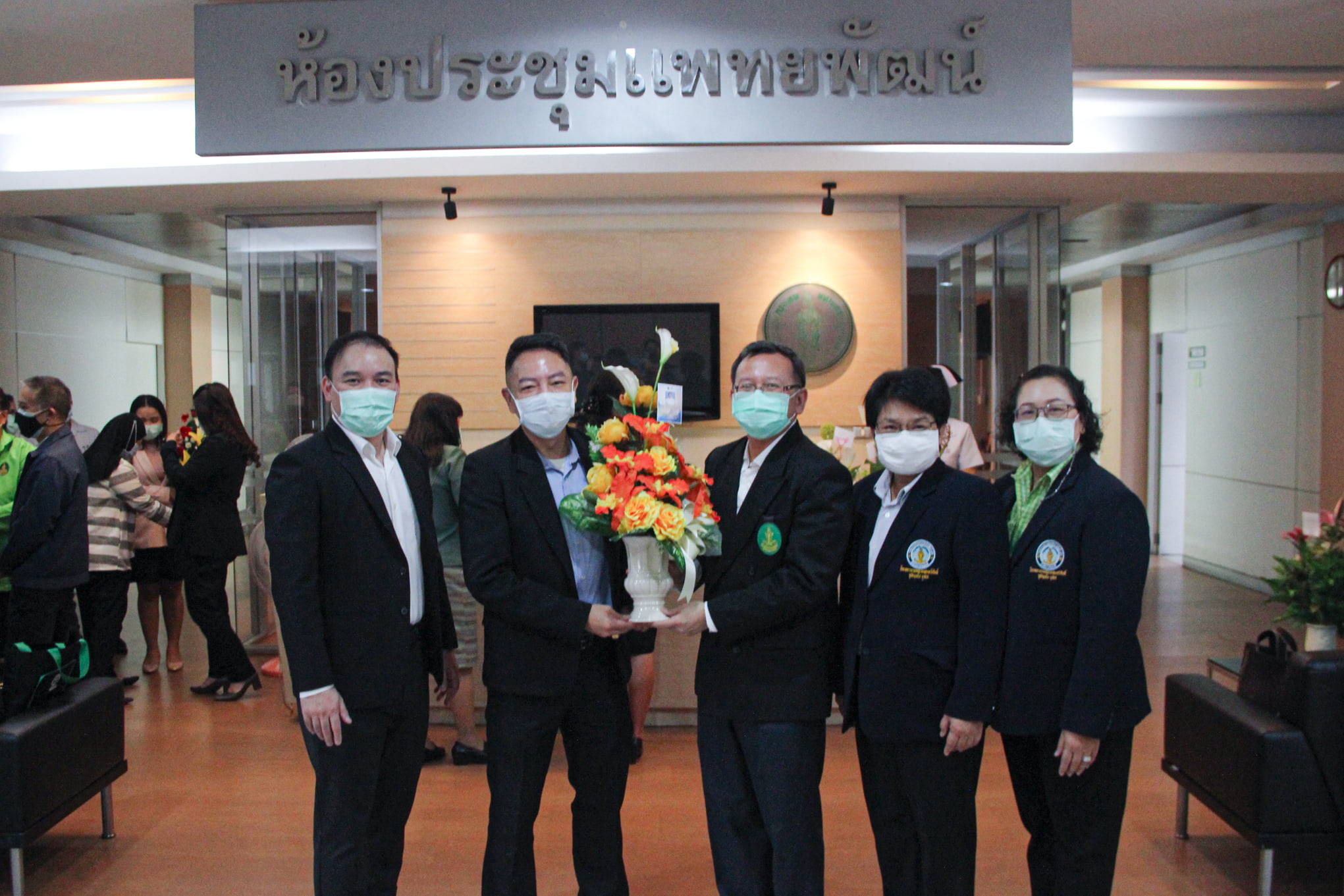 นายพรเทพ แซ่เฮ้ง ผู้อำนวยการโรงพยาบาลหลวงพ่อทวีศักดิ์ ชุตินฺธโร อุทิศ พร้อมคณะผู้บริหาร ร่วมมอบดอกไม้แสดงความยินดีกับ นายยุทธนา เศรษฐนันท์ รองผู้อำนวยการโรงพยาบาลสิรินธร ฝ่ายการแพทย์ ในโอกาสได้รับแต่งตั้งให้ดำรงตำแหน่ง ผู้อำนวยการศูนย์บริการการแพทย์ฉุกเฉิน สำนักการแพทย์ กรุงเทพมหานคร ณ ห้องประชุมแพทยพัฒน์ สำนักการแพทย์ กรุงเทพมหานคร