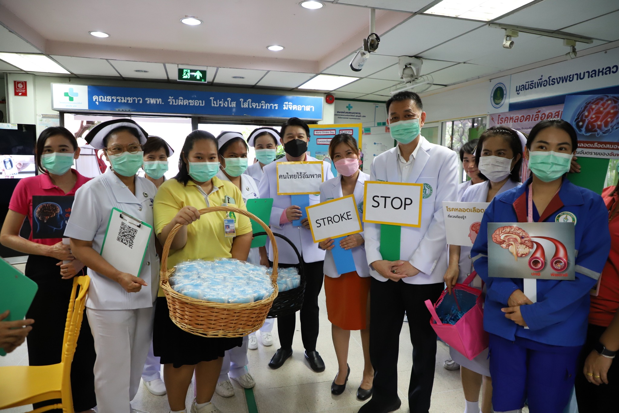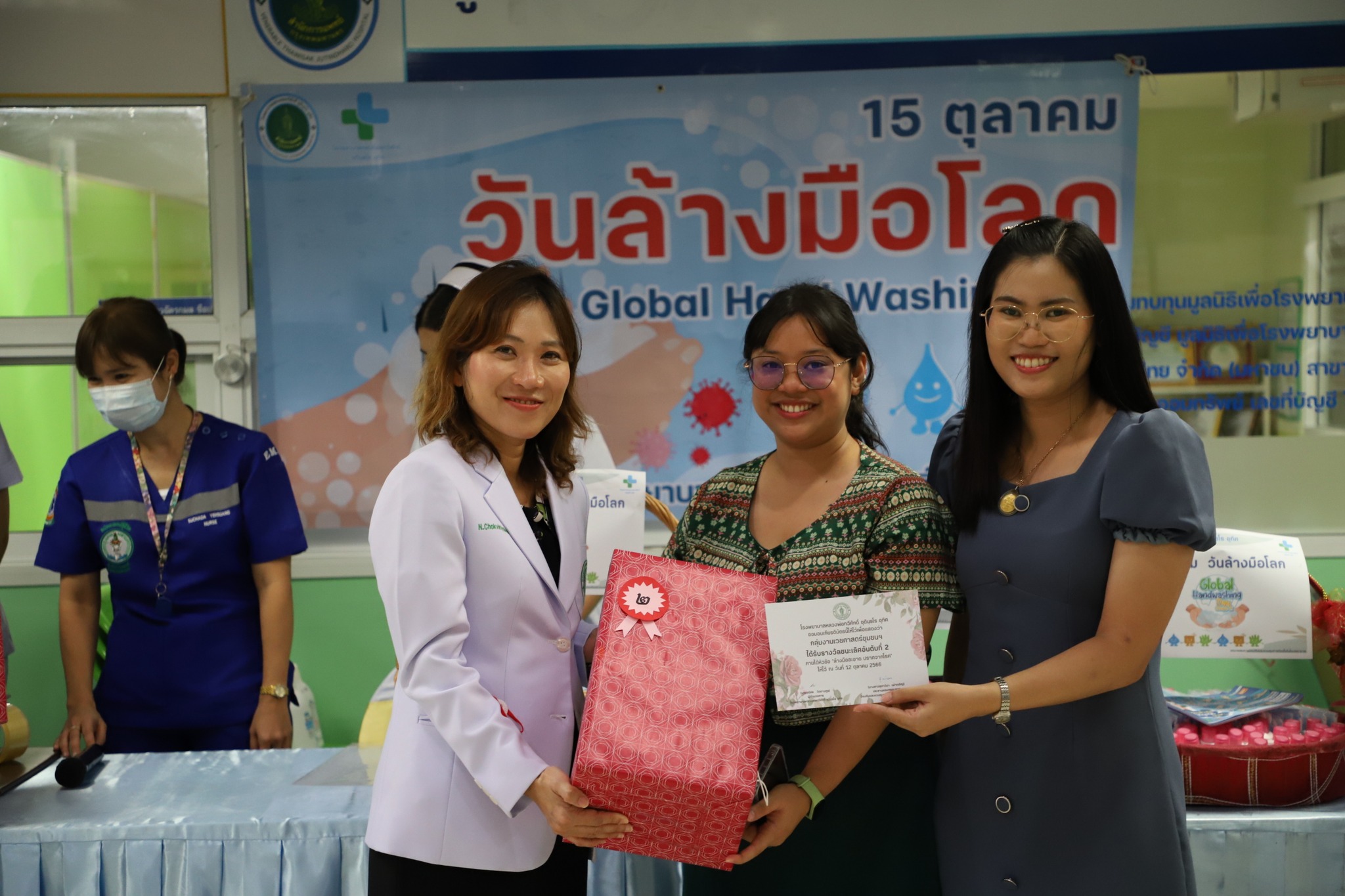 จัดกิจกรรมสัปดาห์รณรงค์วันล้างมือโลก ประจำปี 2566 Global Handwashing Day 2023 is themed “Clean hands are within reach” โดยได้รับเกียรติจาก นางสาวณัฐนรี โชควิริยากร รองผู้อำนวยการโรงพยาบาล ฝ่ายการแพทย์ และ นางสาวสุนันทา วินธิมา รองผู้อำนวยการโรงพยาบาล ฝ่ายบริหาร เป็นประธานในพิธีเปิดและมอบของรางวัลให้แก่ผู้ชนะการประกวดคลิปวีดีโอ ในหัวข้อ “ล้างมือสะอาด ปราศจากโรค” งานนี้จัดขึ้นโดยมีวัตถุประสงค์เพื่อรณรงค์ และกระตุ้นให้บุคลากรของโรงพยาบาล รวมถึงผู้มารับบริการเห็นความสำคัญของการล้างมือ ทั้งนี้เพื่อป้องกันและลดโอกาสในการแพร่กระจายเชื้อโรค โดยมีรณรงค์ให้ความรู้เรื่องการล้างมือให้สะอาดและถูกวิธีและแจกน้ำยาล้างมือและหน้ากากอนามัยให้กับผู้มารับบริการ