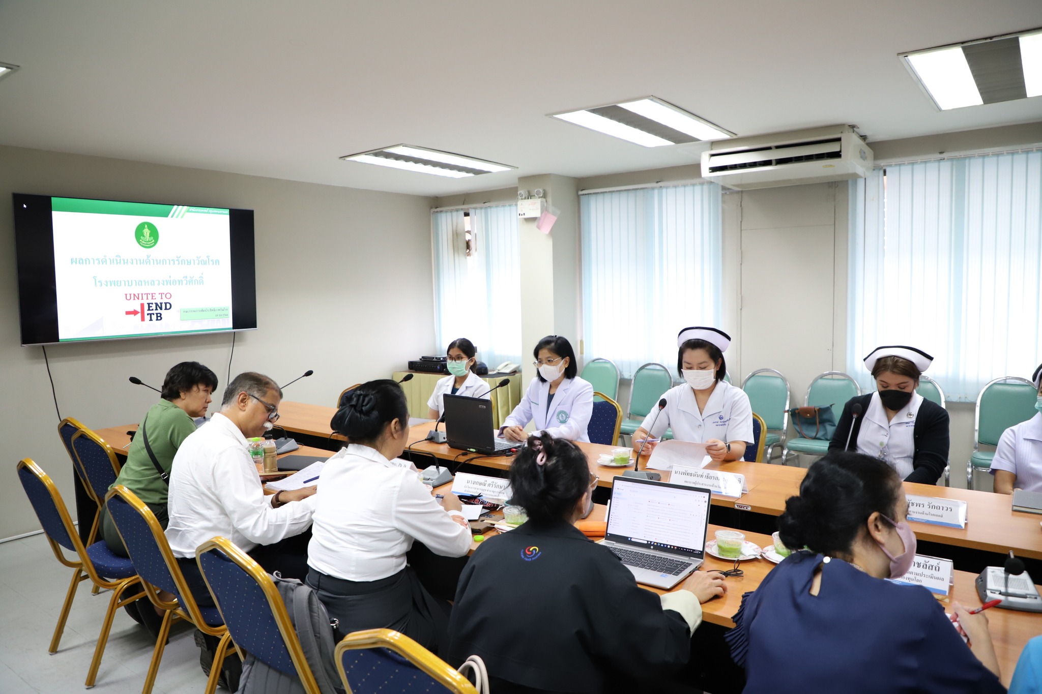 นายอดิศร วิตตางกูร ผู้อำนวยการโรงพยาบาลหลวงพ่อทวีศักดิ์ ชุตินฺธโร อุทิศ พร้อมคณะผู้บริหารและบุคลากร ให้การต้อนรับ Prof. Sudhir Kumar, Ph. D. Public Health Expert, OIG Team The Globle Fund และคณะผู้แทนสำนักงานผู้ตรวจราชการงบประมาณกองทุนโลก เข้าทบทวนและศึกษาเฉพาะเรื่อง ด้านการดำเนินงานโครงการยุติปัญหาวัณโรคและโรคเอดส์ด้วยชุดบริการ RRTTPR ที่ได้รับการสนับสนุนจากกองทุนโลก ณ ห้องประชุมเสาวนีย์ ชั้น 7 อาคารเมตตาธรรม