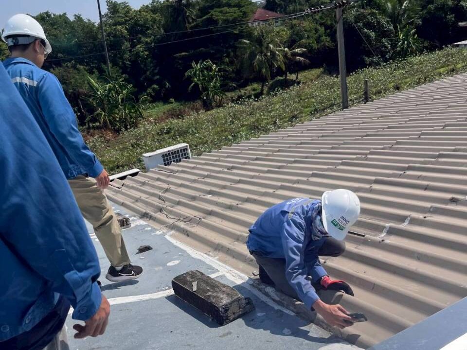 บริษัท อินโนเวชั่น เทคโนโลยี ภูเก็ต จำกัด เข้าสำรวจพื้นที่สภาพหลังคาก่อนเริ่มงานติดตั้งระบบผลิตไฟฟ้าพลังงานแสงอาทิตย์