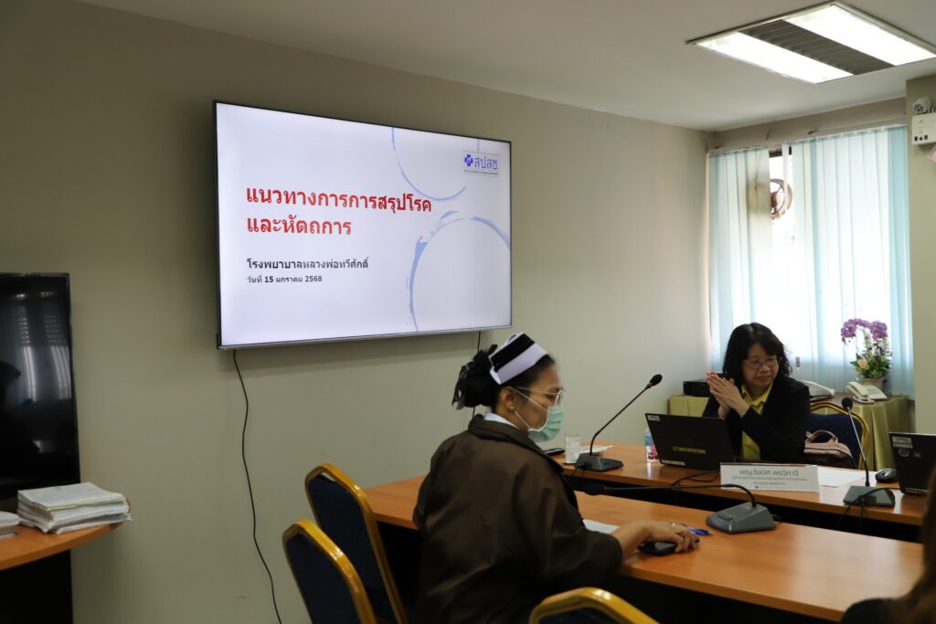นายสมเกียรติ อัศวโรจน์พงษ์ ผู้อำนวยการโรงพยาบาลหลวงพ่อทวีศักดิ์ฯ พร้อมด้วยนางสาวณัฐนรี โชควิริยากร รองผู้อำนวยการโรงพยาบาล ฝ่ายการแพทย์ ให้การต้อนรับ พญ.รัชนิศ พรวิภาวี ผู้อำนวยการฝ่ายตรวจสอบหลังการจ่ายชดเชยและคุณภาพบริการ และ อ.วรางคณา ประเวสไพรสนธิ์ ผู้เชี่ยวชาญฝ่ายตรวจสอบหลังการจ่ายชดเชยและคุณภาพบริการ จาก สปสช ณ ห้องประชุมเสาวนีย์ ชั้น 7 อาคารเมตตาธรรม