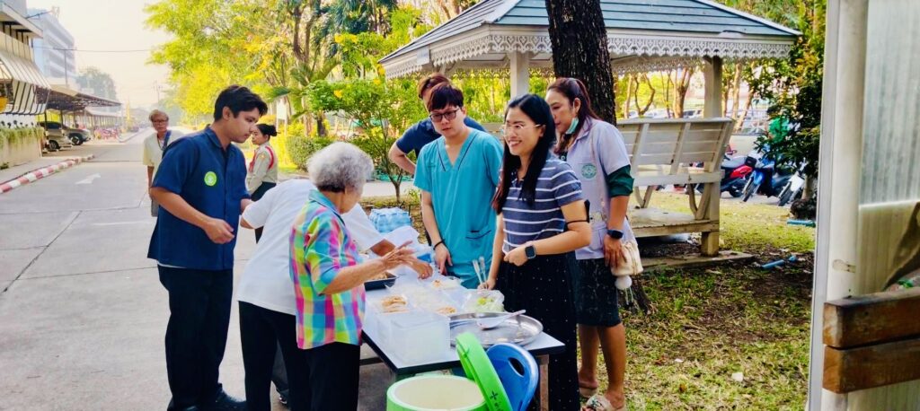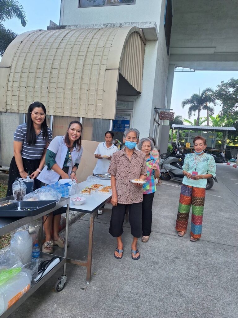 ชมรมผู้สูงอายุและกลุ่มงานเวชศาสตร์ชุมชนฯ โรงพยาบาบหลวงพ่อทวีศักดิ์ฯ ร่วมแจกอาหารสำหรับผู้รับบริการและเจ้าหน้าที่