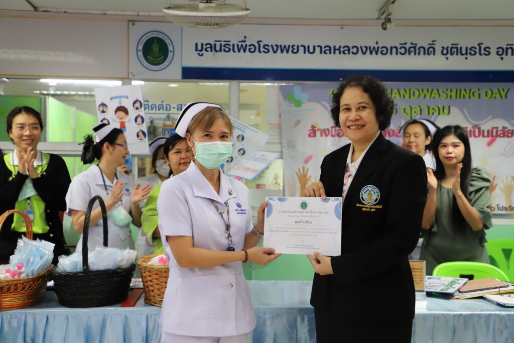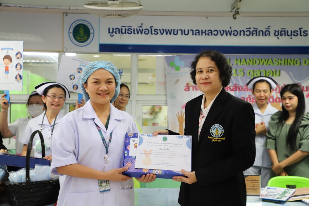 โรงพยาบาลหลวงพ่อทวีศักดิ์ ชุตินฺธโร อุทิศ จัดกิจกรรมสัปดาห์รณรงค์วันล้างมือโลก ประจำปี 2568 “มือสะอาดไม่ไกลเกินเอื้อม” โดยได้รับเกียรติจาก นางจิราภรณ์ ณะแก้ว รองผู้อำนวยการโรงพยาบาล ฝ่ายบริหาร เป็นประธานในพิธีเปิด งานนี้จัดขึ้นโดยมีวัตถุประสงค์เพื่อรณรงค์ และกระตุ้นให้บุคลากรของโรงพยาบาล รวมถึงผู้มารับบริการเห็นความสำคัญของการล้างมือ ทั้งนี้เพื่อป้องกันและลดโอกาสในการแพร่กระจายเชื้อโรค โดยมีรณรงค์ให้ความรู้เรื่องการล้างมือให้สะอาดและถูกวิธีและแจกน้ำยาล้างมือและหน้ากากอนามัยให้กับผู้มารับบริการ
