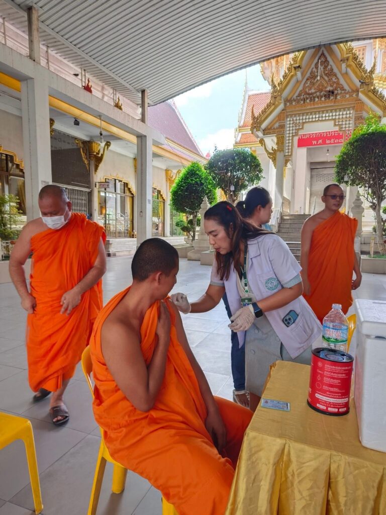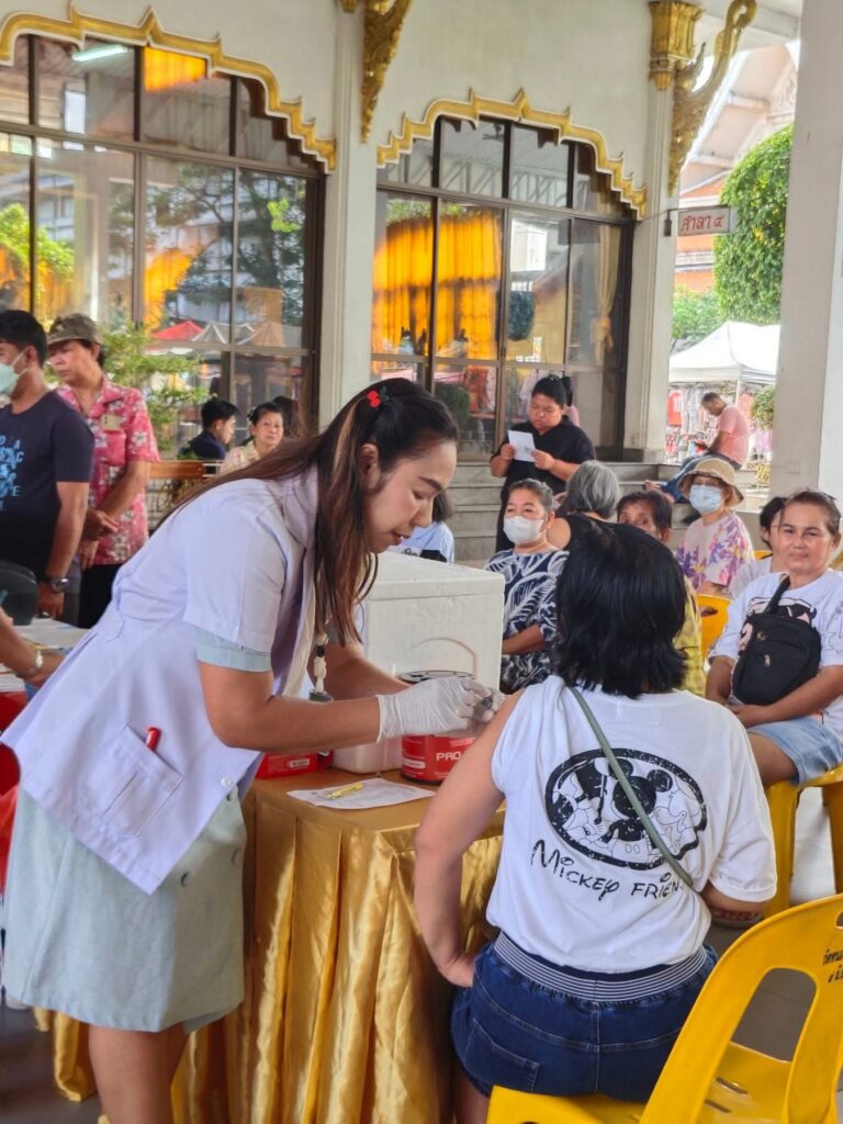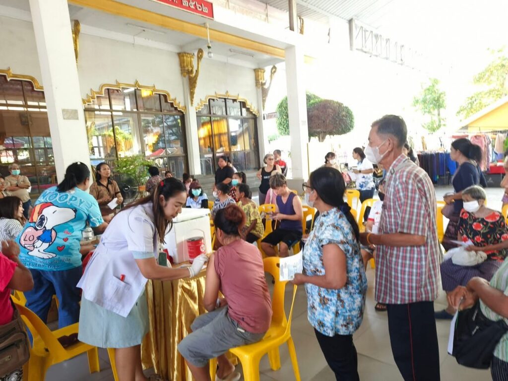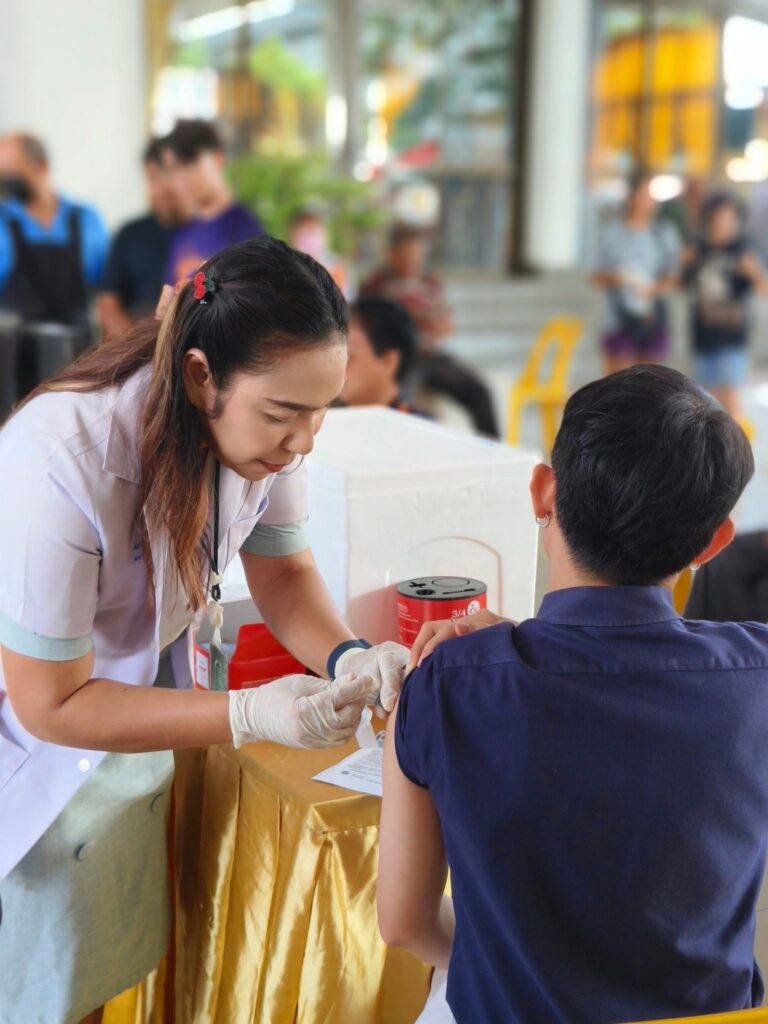 บริการฉีดวัคซีนไข้หวัดใหญ่ให้กับประชาชน ณ บริเวณตลาดวัดหนองแขม วันที่ 17 ตุลาคม 2568 กลุ่มงานเวชศ่สตร์ชุมชนและเวชศาสตร์ผู้สูงอายุ โรงพยาบาลหลวงพ่อทวีศักดิ์ ชุตินฺธโร อุทิศ ออกให้บริการฉีดวัคซีนไข้หวัดใหญ่ให้กับประชาชน ณ บริเวณตลาดวัดหนองแขม