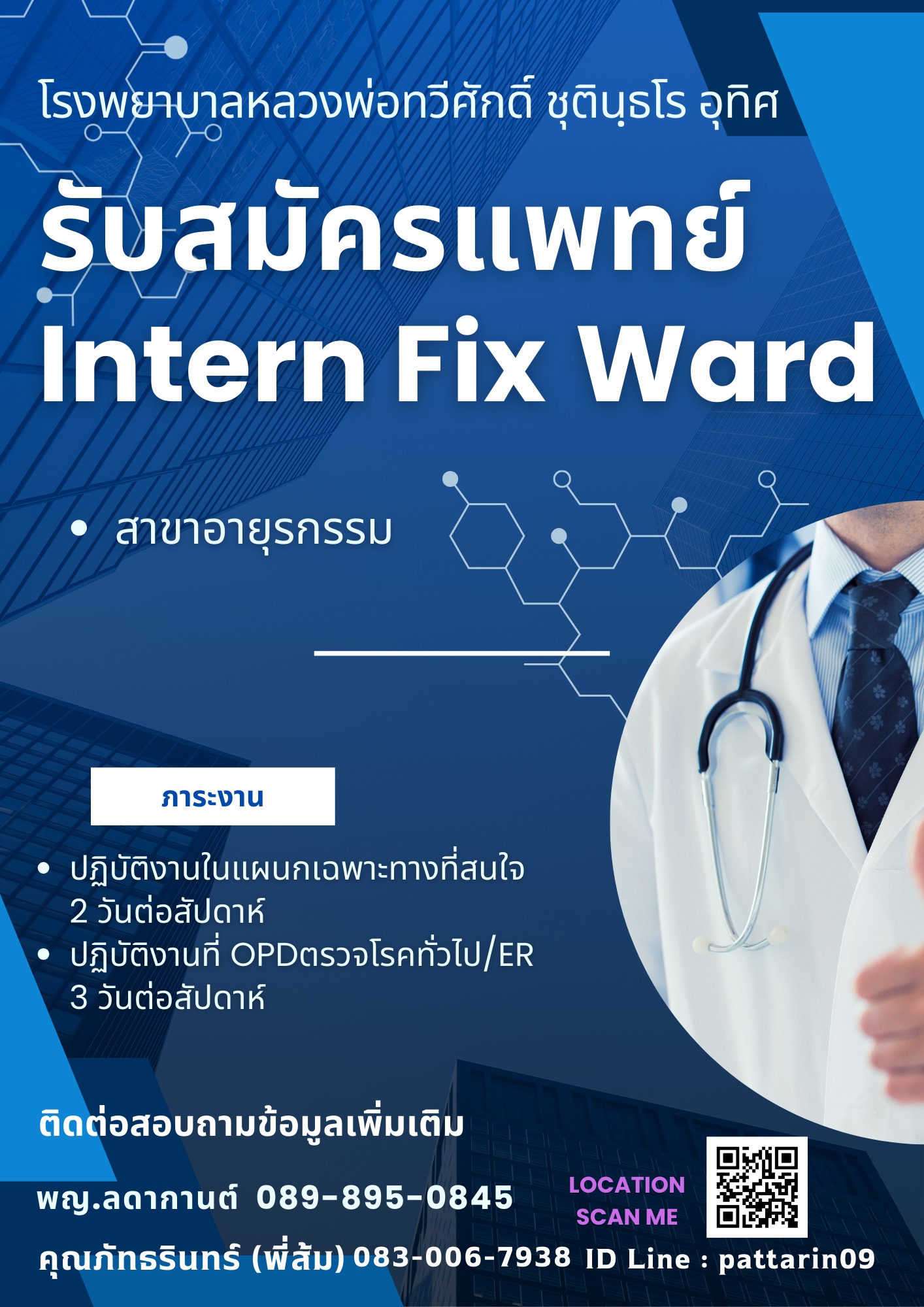 รับสมัครแพทย์ Intern Fix Ward สาขาอายุรกรรม