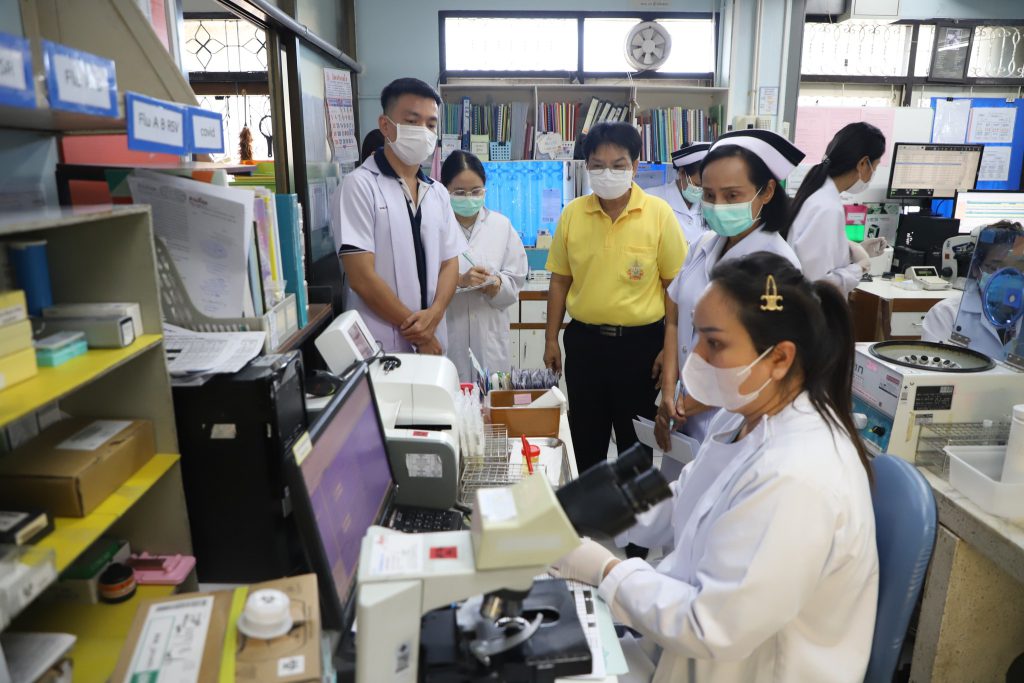 โดยนางสาวสุนันทา วินธิมา รองผู้อำนวยการโรงพยาบาล ฝ่ายบริหาร ประธานคณะกรรมการสิ่งแวดล้อมและความปลอดภัย(ENV), งานป้องกันและควบคุมการติดเชื้อในโรงพยาบาล(IC) และ กลุ่มงานพัฒนาคุณภาพอาชีวอนามัยและสิ่งแวดล้อม เข้าตรวจประเมินความปลอดภัยในห้องปฏิบัติการ